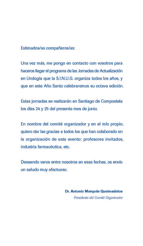 Carta del Presidente del VIII Jornadas de Actualización en Urología