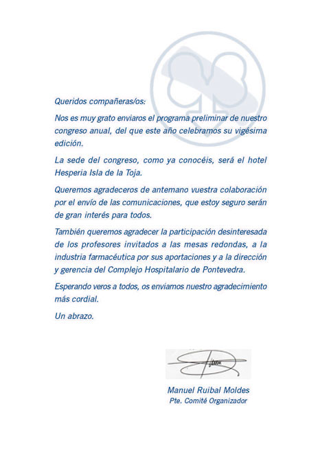 Carta del Presidente del XX Congreso de la Sociedad Gallega de Urología